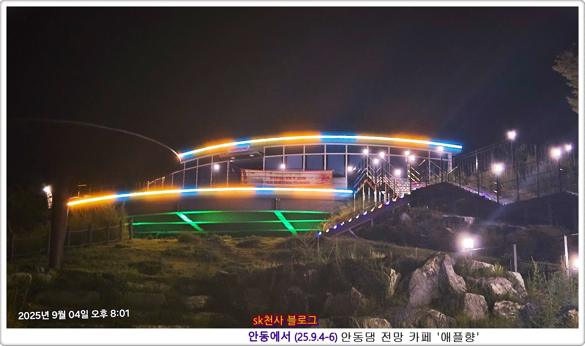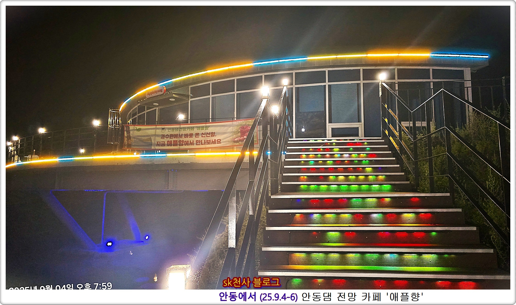 ↘ 4일 저녁에 찾아갔으나 평일이라 그런지, 손님들이 없어서 그런지 문을 닫아 들어가지 못했던 안동댐 전망 카페인 '애플 향'. 2025년 4월 27일에 갔을 때는 카페의 이름이 '안달프' 였는데, 이번에 갔더니 카페 이름이 '애플 향'으로 바뀌었습니다.