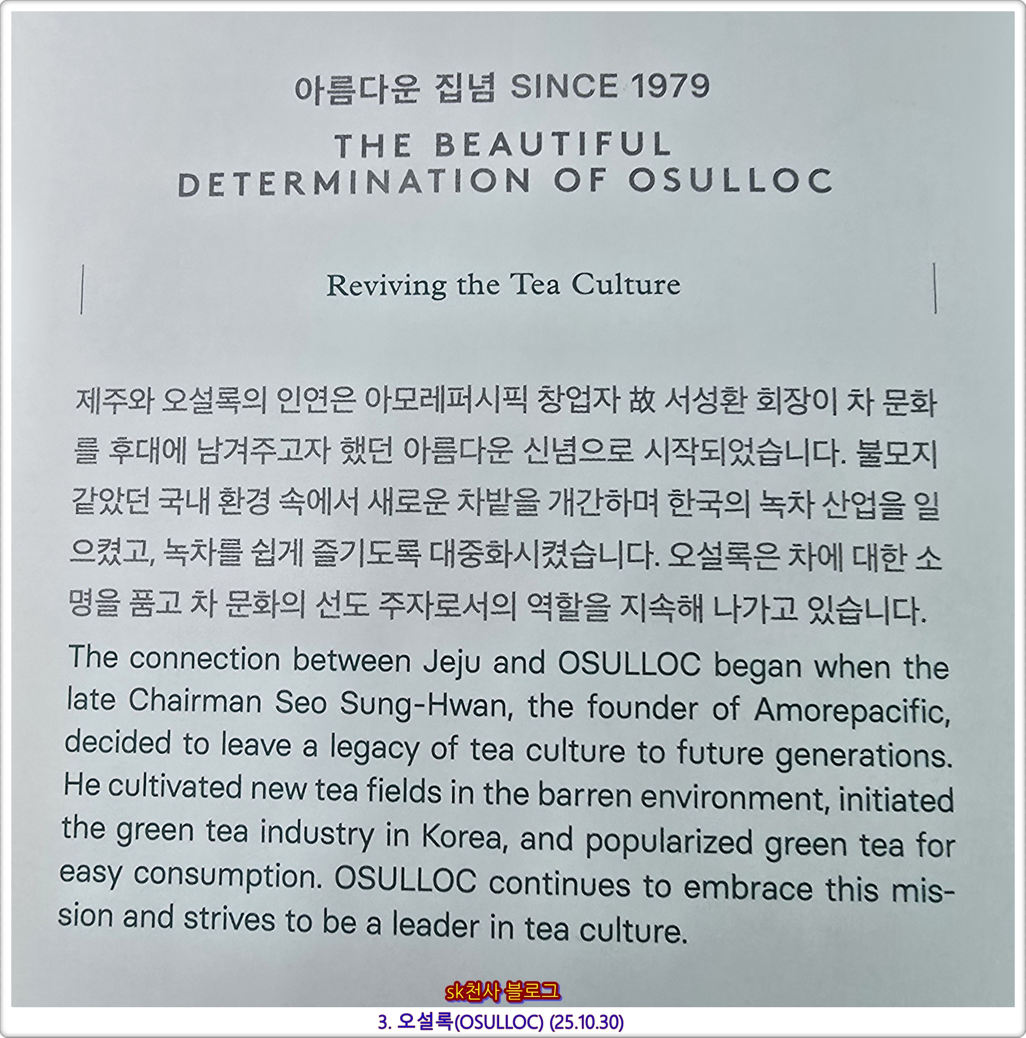 * 장 소 : 오설록(OSULLOC) 티 뮤지엄 - 제주특별자치도 서귀포시 안덕면 서광리 1235-1