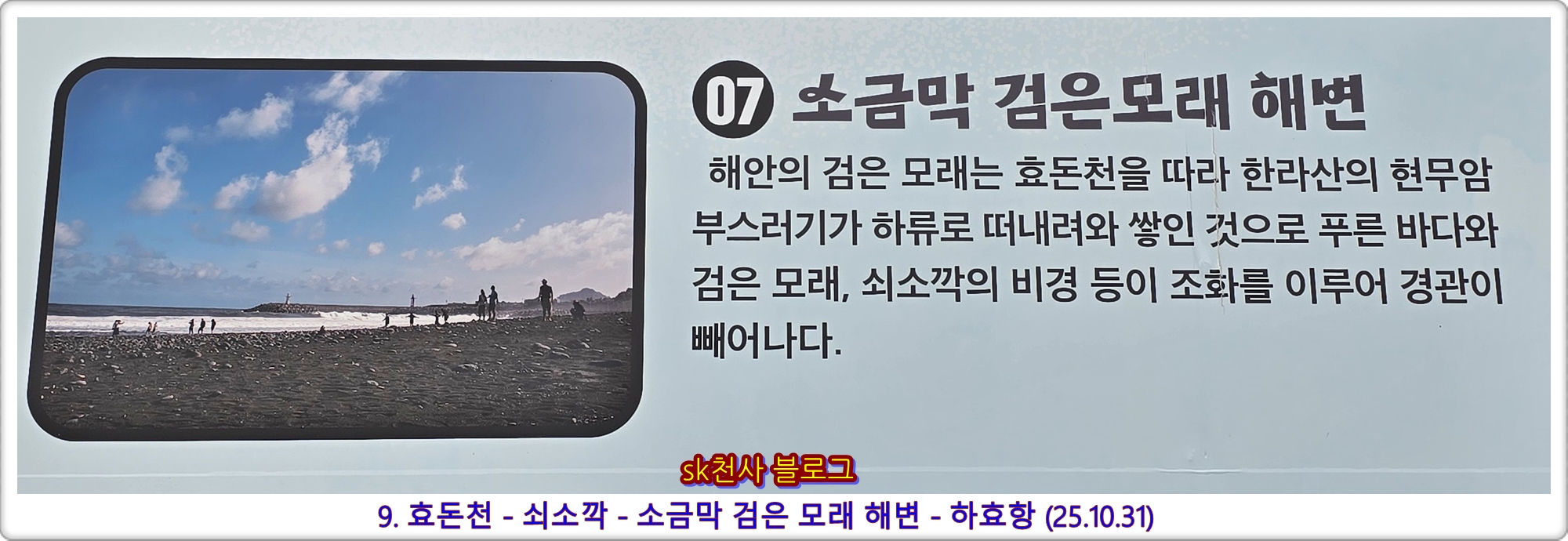 ↘ 효돈9경 트멍길에서 제7경인 소금막 검은 모래 해변 안내
