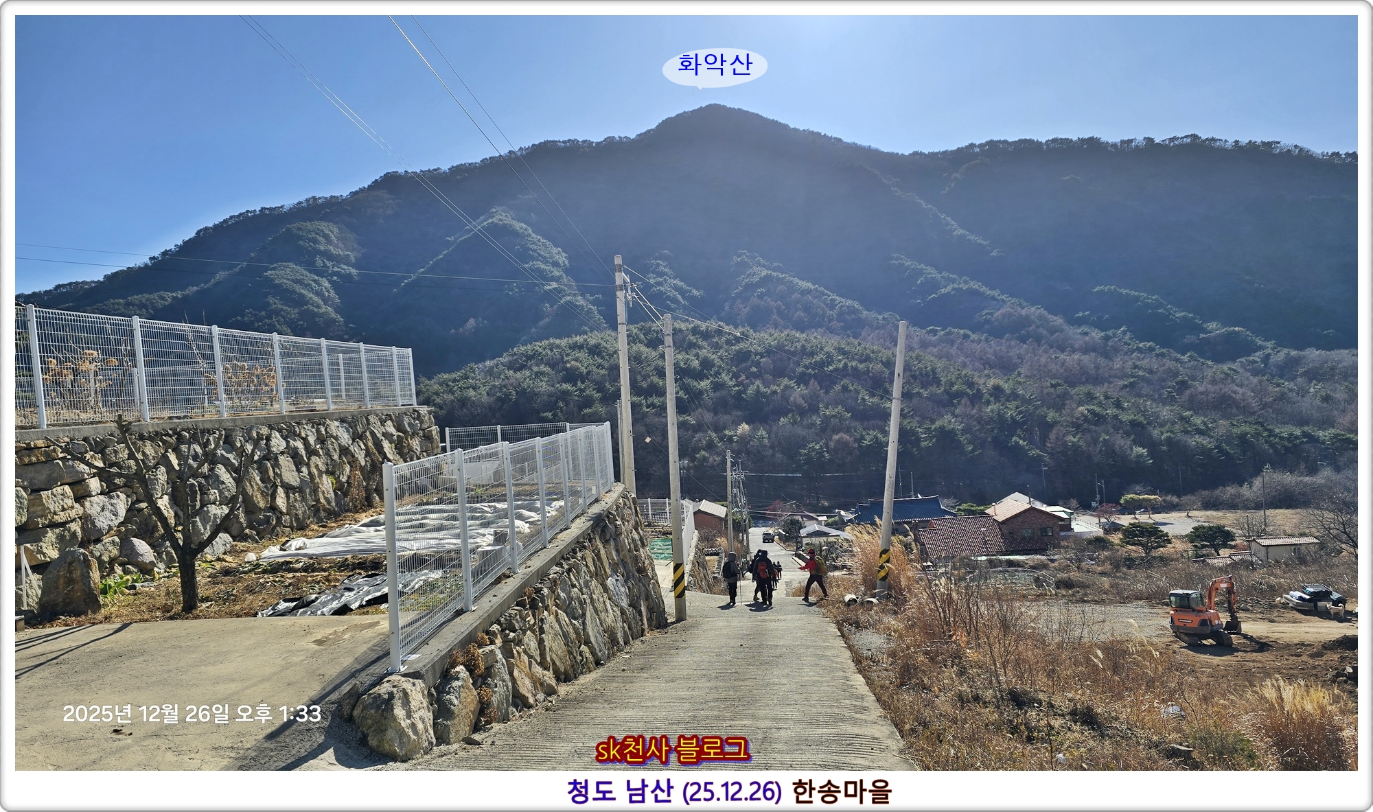 ↘ 한송마을에 도착해서 앞에 화악산을 바라보고... (13:33)